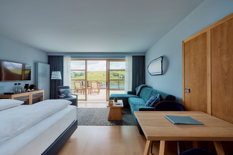 Architettura Organica: La struttura utilizza legno, pietra e ampie vetrate per annullare la distanza tra l'ospite e la maestosità delle cime. Le camere e le suite sono rifugi di luce, curate con una precisione millimetrica per garantire un riposo avvolto dal panorama alpino.