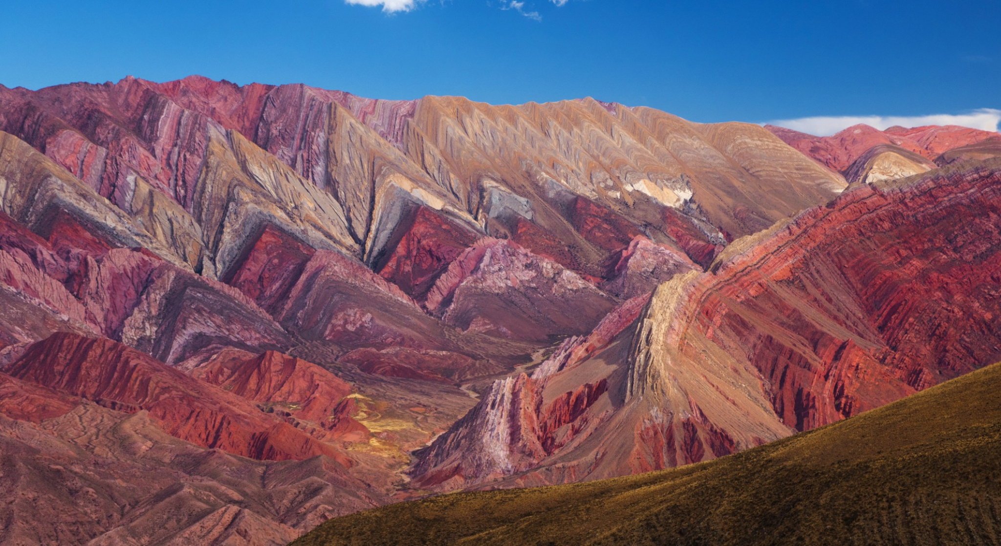 Dopo la colazione partenza per la Quebrada de Humahuaca, dichiarata Patrimonio dell'Umanità, dove il paesaggio e i colori delle colline si combinano con le culture altrettanto colorate che abitano questa zona. Raggiunta Purmamarca ci fermiamo ad ammirare il Cerro dei Sette Colori nello splendore dei colori del mattino. Si prosegue per la Quebrada de Humahuaca tra altipiani andini e foreste, caratterizzata da vegetazione subtropicale di alta quota. La strada sale fino a 2.500 metri, offrendo panorami spettacolari di montagne colorate (Patrimonio Mondiale dell’Umanit). Da qui si prosegue verso il belvedere di Hornocal a 4.300 m conosciuta anche come il Cerro dei 14 Colori, uno spettacolo geologico che si apre davanti ai nostri occhi mostrando strati di roccia colorata disposti come pagine di un libro di pietra. Al termine della visita si rientra a Purmamarca. Pranzo e cena liberi. pernottamento.