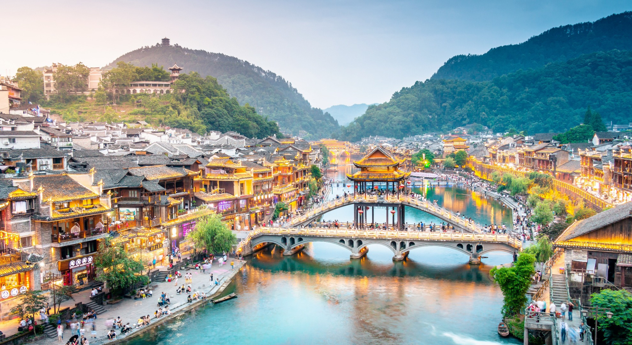 Prima colazione. Trasferimento in stazione e treno (circa 5 ore)per Huaihua. Pranzo libero. Arrivo e trasferimento in auto per Fenghuang, l’antica città della Fenice. Visita orientativa dell’antica città. Sistemazione in albergo. Cena cinese in ristorante.