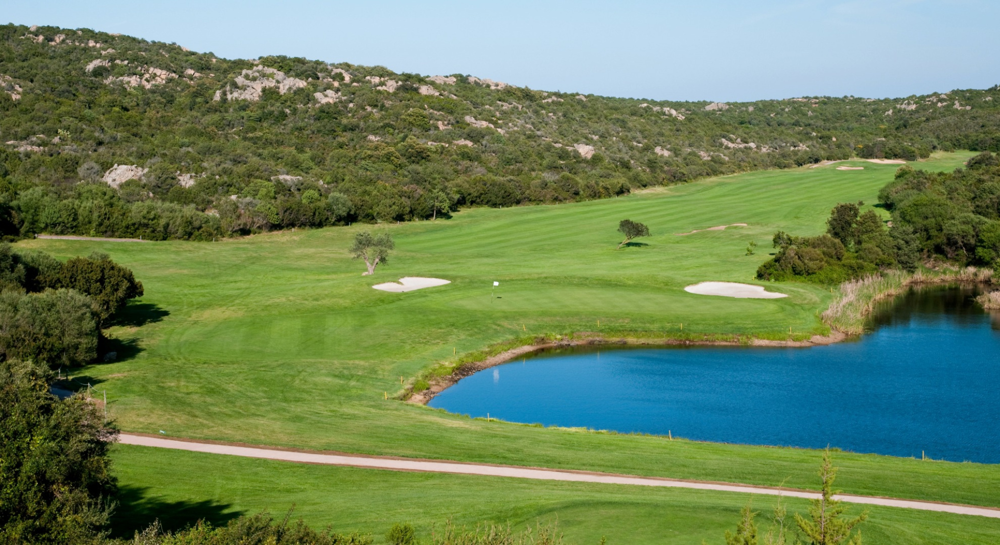 I fairway si snodano tra spettacolari affioramenti granitici, macchia mediterranea e scintillanti insenature costiere, con una vista costante sulle acque smeraldine della Costa Smeralda. Bunker strategici, laghi naturali e green ben protetti richiedono precisione e una gestione attenta del percorso, mentre il vento sempre presente aggiunge un ulteriore livello di complessità ad ogni tiro. Ogni buca è visivamente spettacolare ma anche estremamente impegnativa, offrendo un'esperienza di golf raffinata dove natura, strategia e pura bellezza convergono.